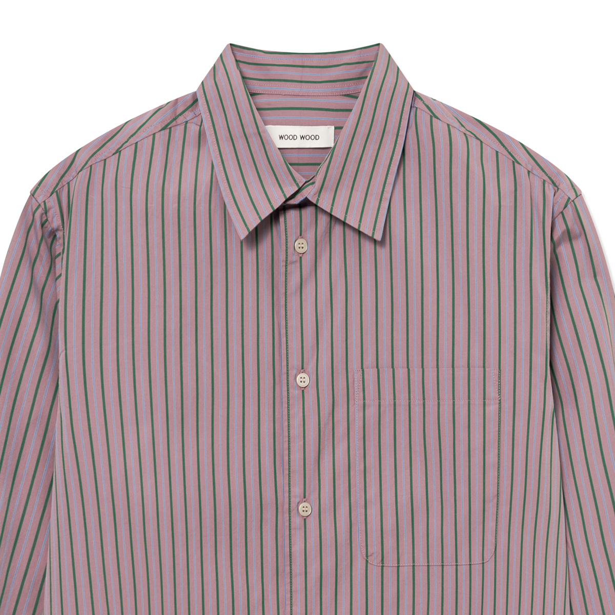 Wood Wood Nico Shirt – Gestreift in Plum/Green