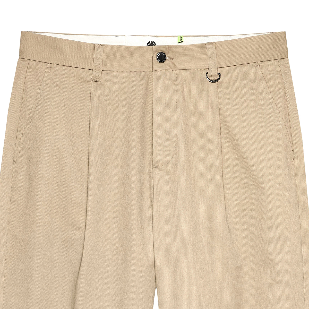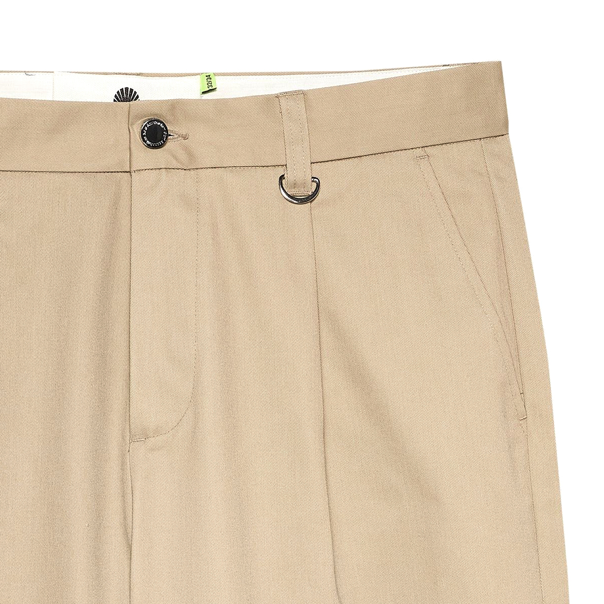 - Bund mit Metall-Knopf, Reißverschluss und Bundfalten