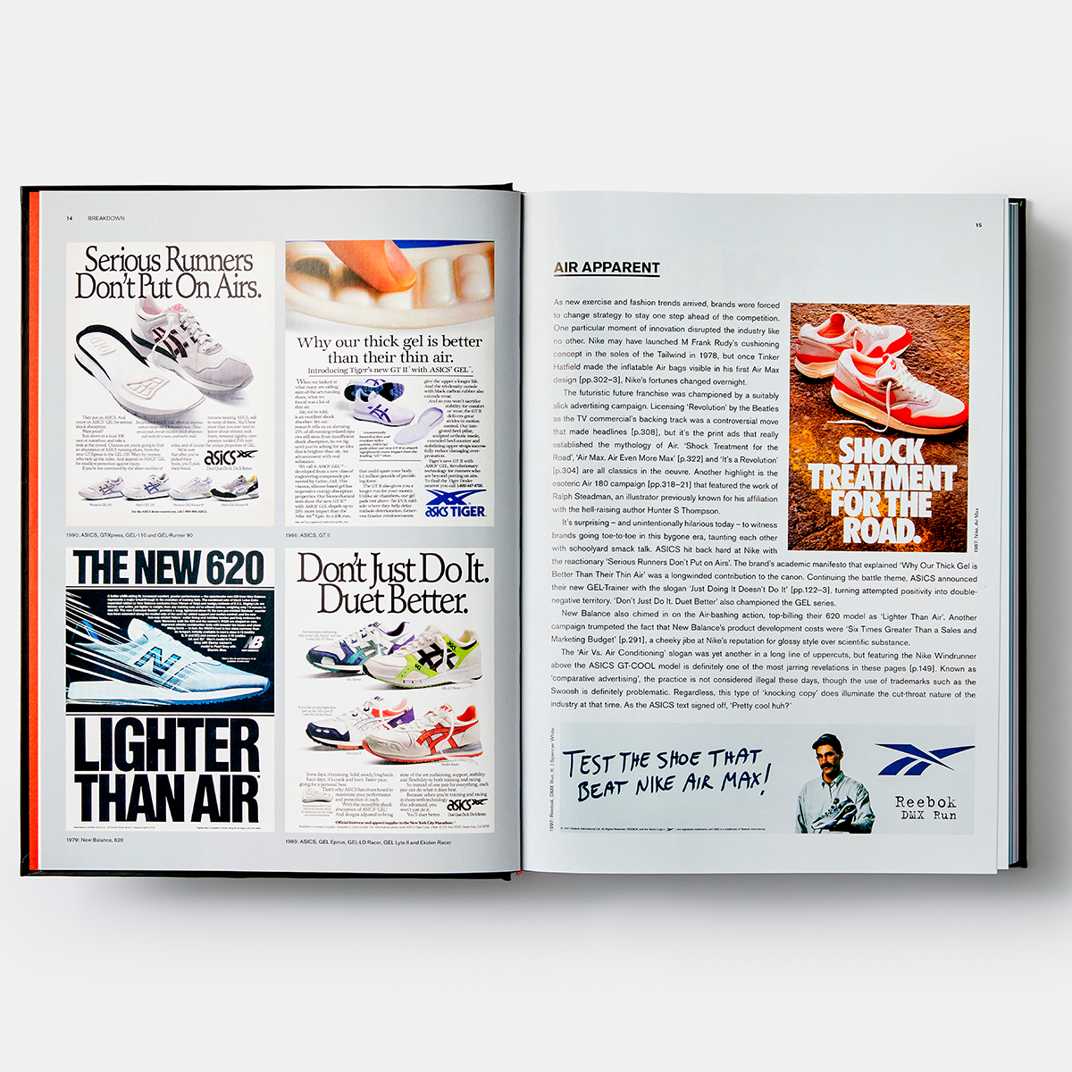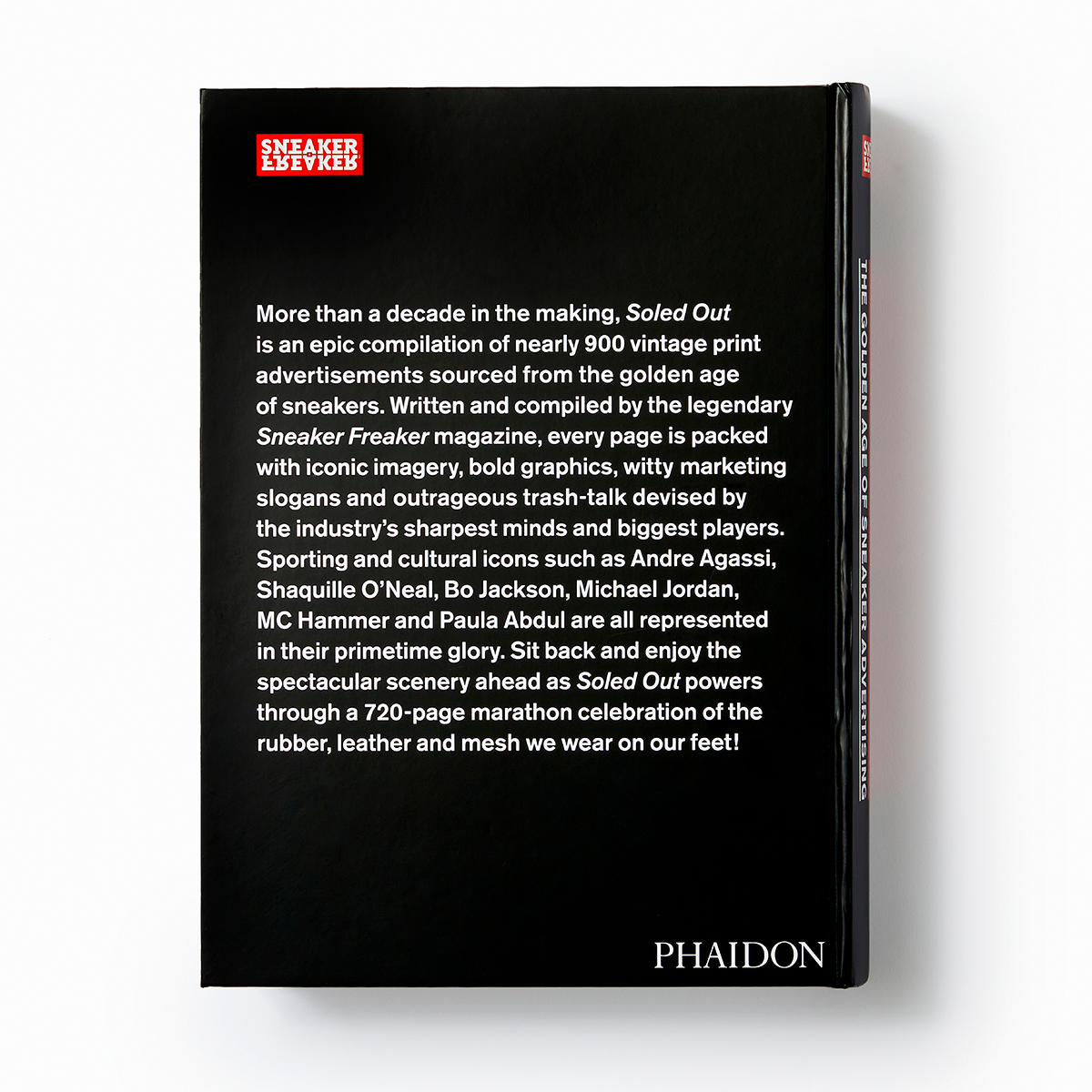 Mit Superstar-Athleten und Ikonen wie Andre Agassi, Paula Abdul, Bo Jackson, Bugs Bunny, Michael Jordan, MC Hammer und Shaquille O’Neal ist jede Seite gespickt mit klassischen Sneaker-Modellen, unvergesslichen Grafiken und jeder Menge Trash-Talk. Soled Out ist ein 720-Seiten-Marathon über Gummi, Leder und Mesh, welches wir an unseren Füßen tragen.