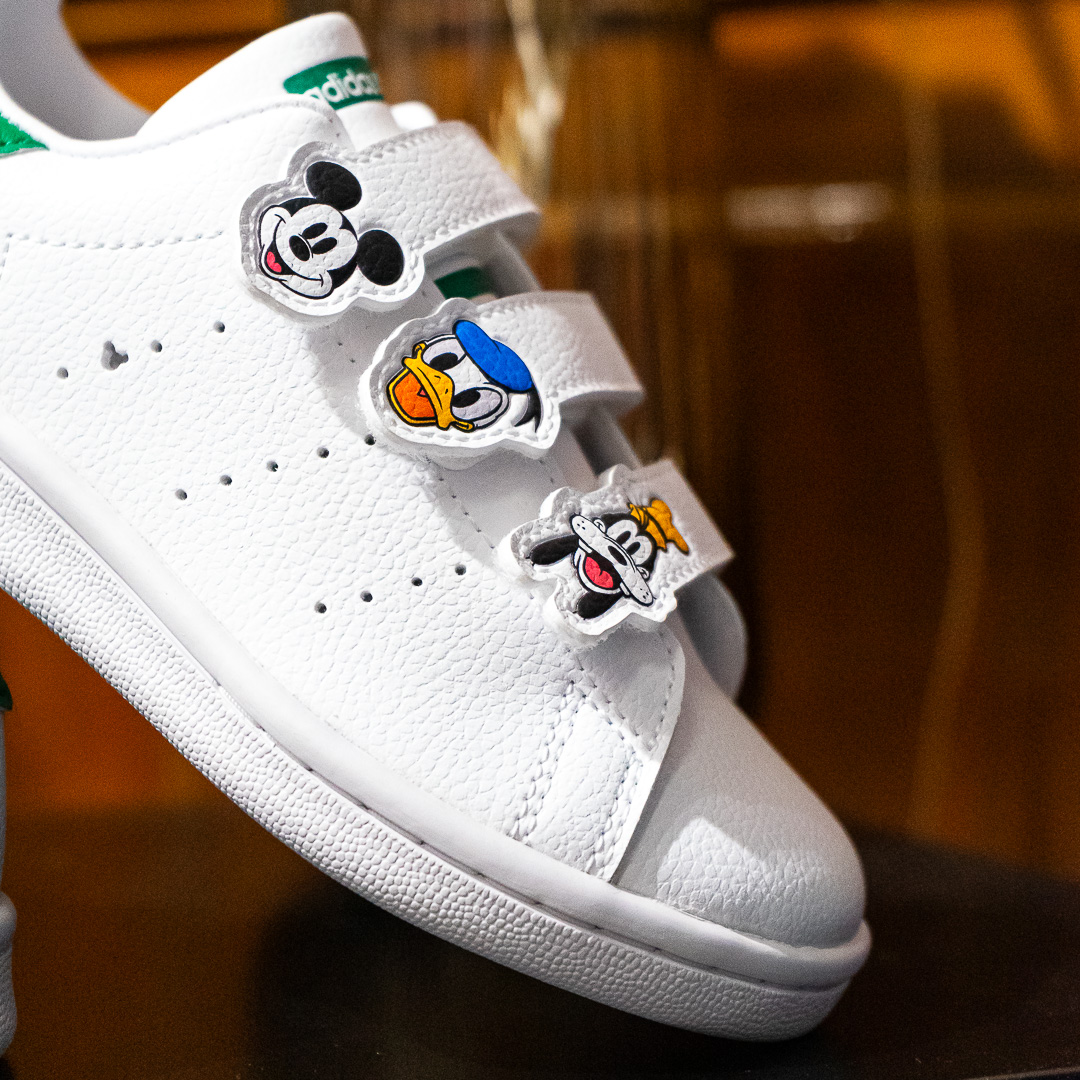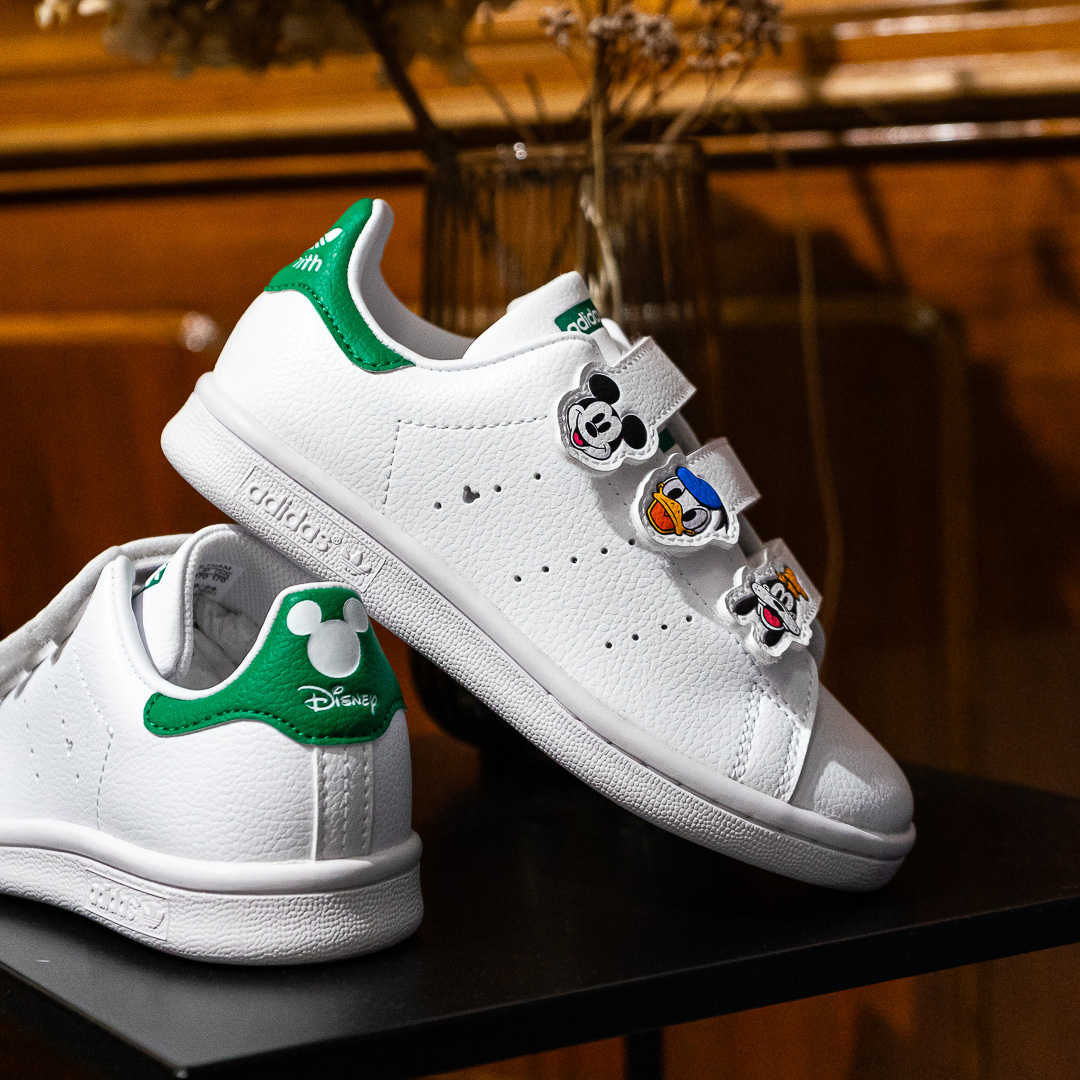 Adidas und Disney präsentieren Mickey und seine Freunde auf dem legendären Stan Smith. Das synthetische Obermaterial ist leicht zu reinigen und die Klettverschlüsse machen das An- und Ausziehen kinderleicht.