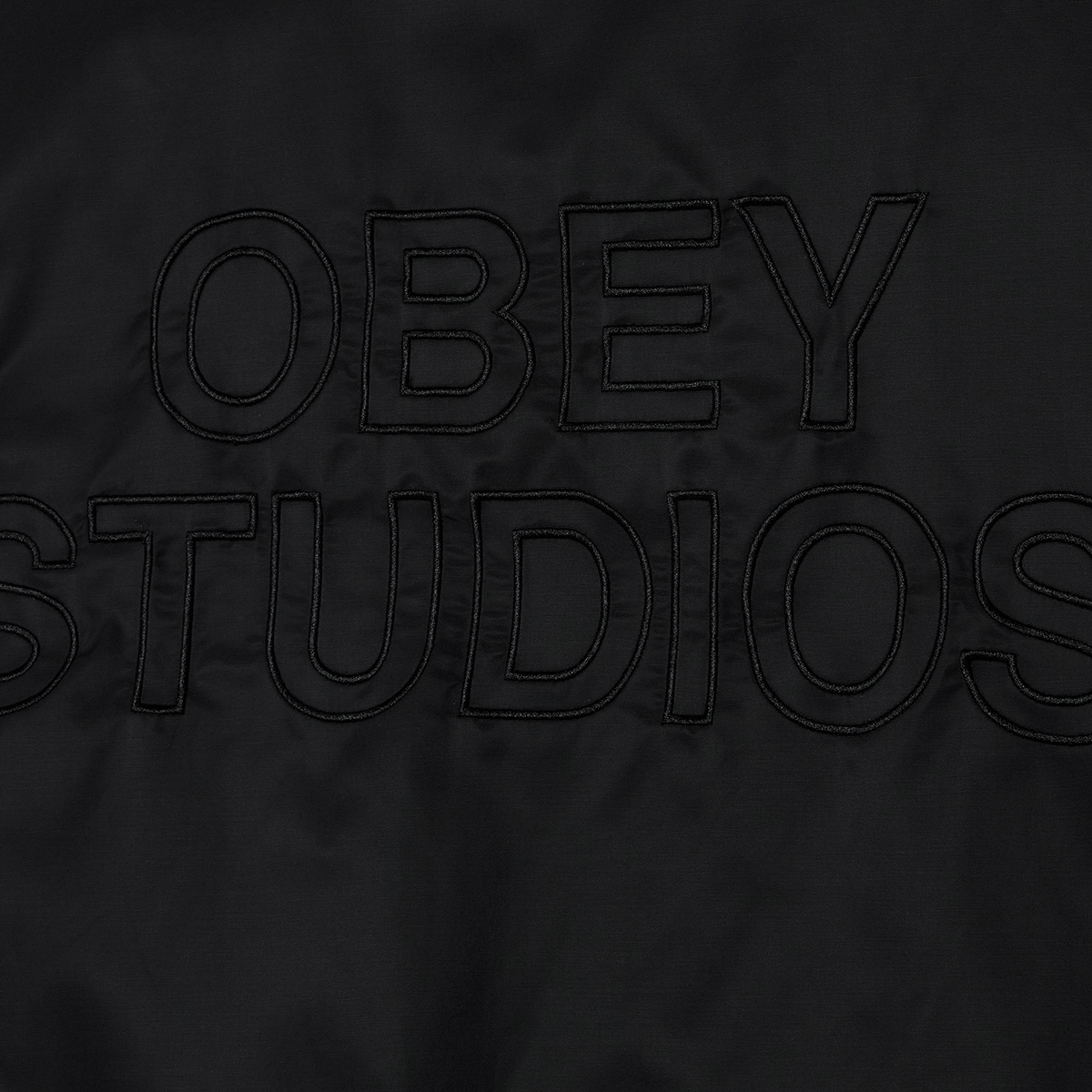 Gesticktes OBEY STUDIOS Artwork auf der Brust und dem Rücken