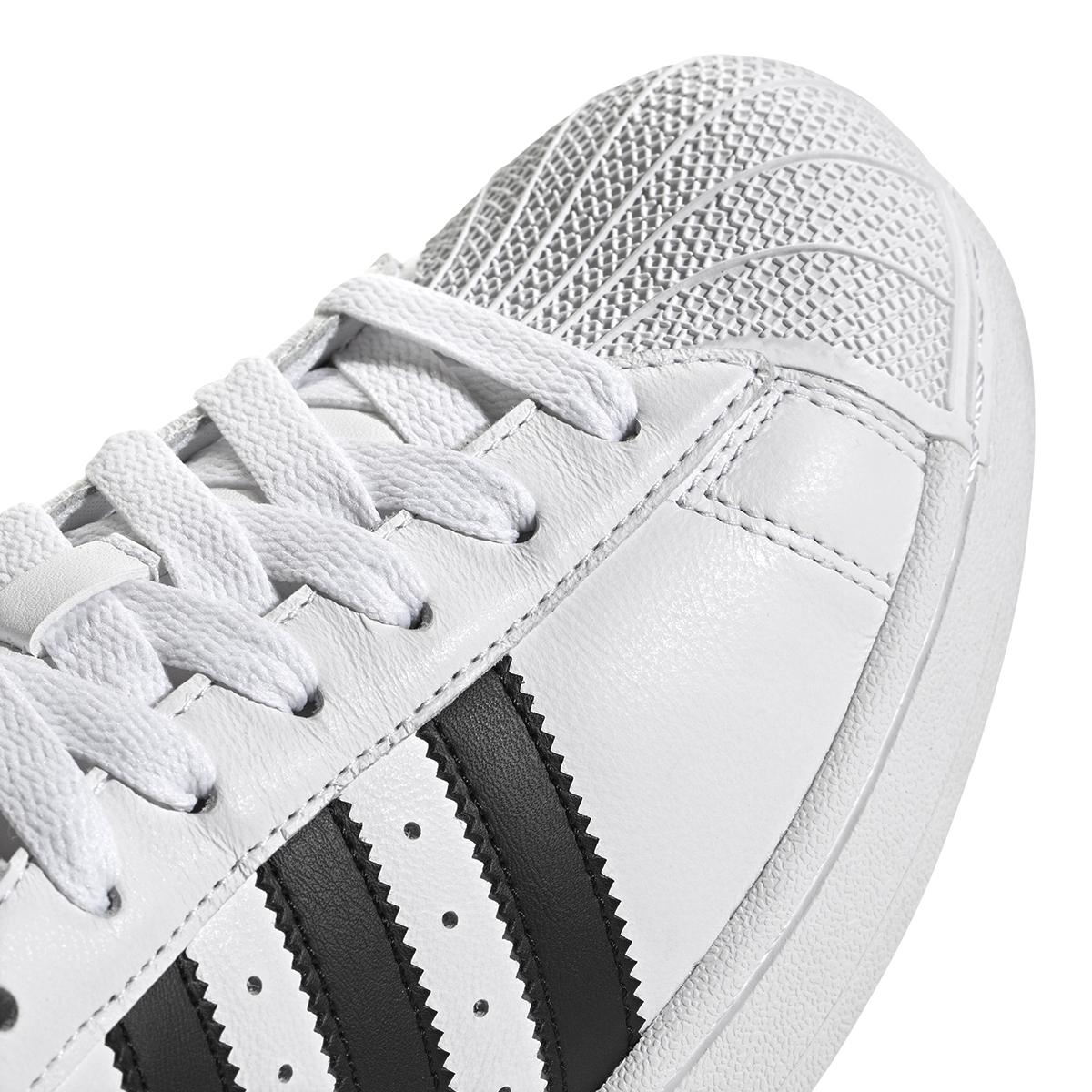 Die Wurzeln im Basketball, adaptiert für lässige Streetwear-Looks: Der Superstar ist zurück. Mit den gezackten 3-Streifen, der unverkennbaren Shell Toe und dem Box-Logo ist er durch und durch ein Original.