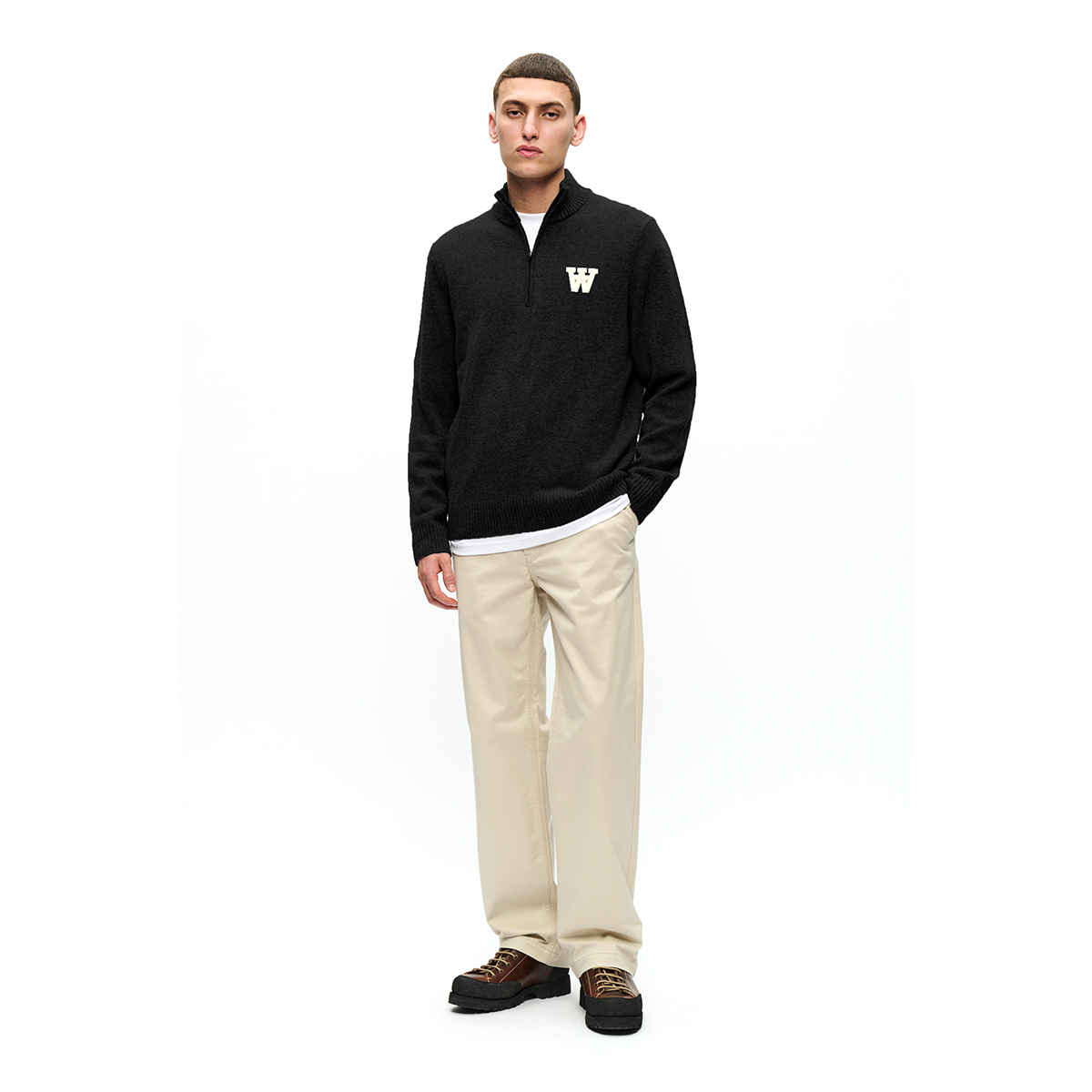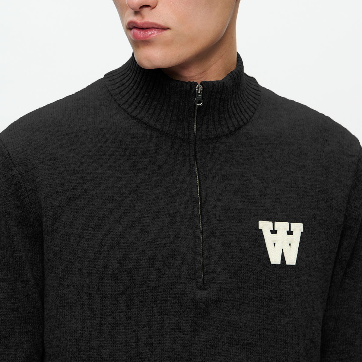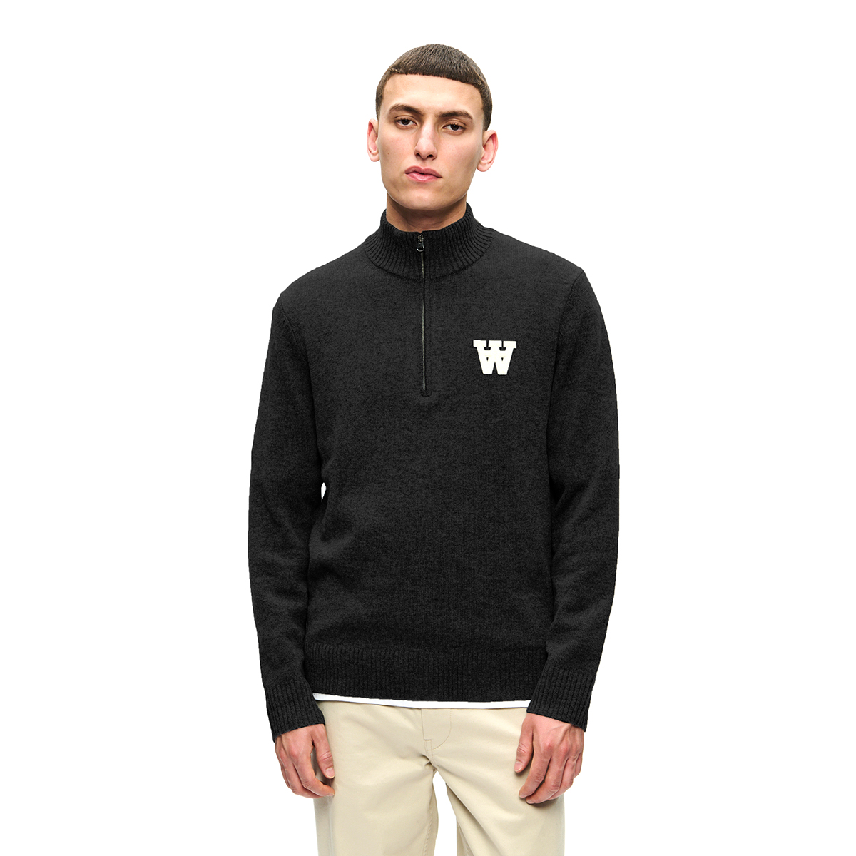 Das WOOD WOOD Tay Halfzip Stricksweatshirt kommt in einem Unisex Standard-Fit und in feiner Lammwolle.