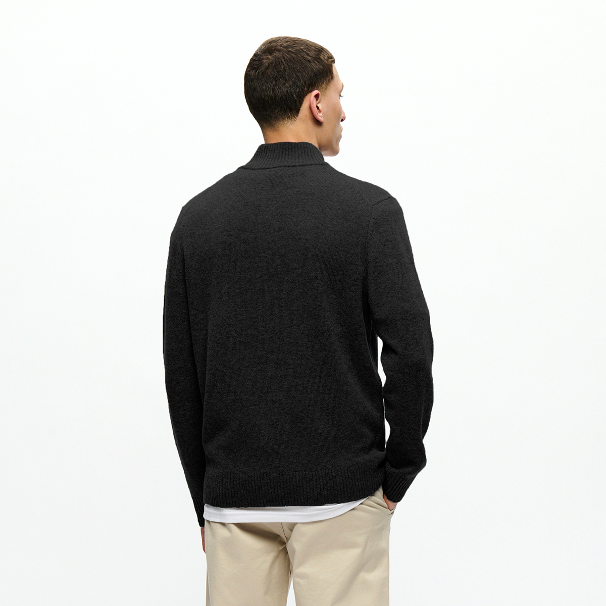 Leichter Stricksweater mit halbem Reißverschluss, lockerer Passform, geripptem Stehkragen und weichem Lammwoll-Strickmaterial. Elastische Bündchen sorgen für ganztägigen Tragekomfort.