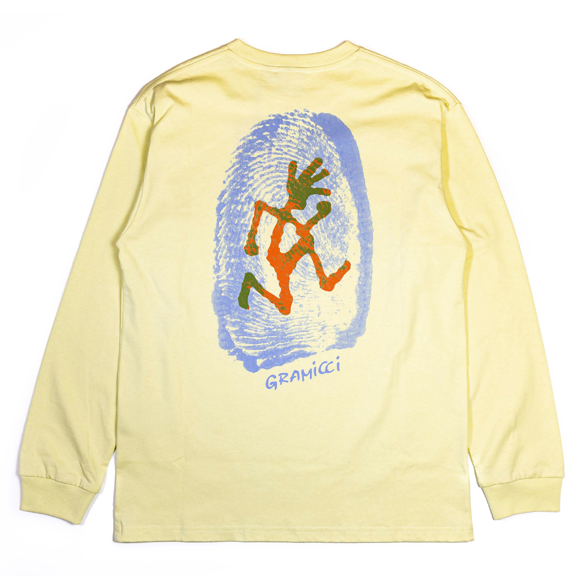 Das Gramicci Thumbprint Langarm T-Shirt besteht aus 100% Organic Cotton in einer super schönen und weichen Waschung. Auf der Brust und dem Rücken befindet sich ein gedrucktes Thumbprint Artwork.