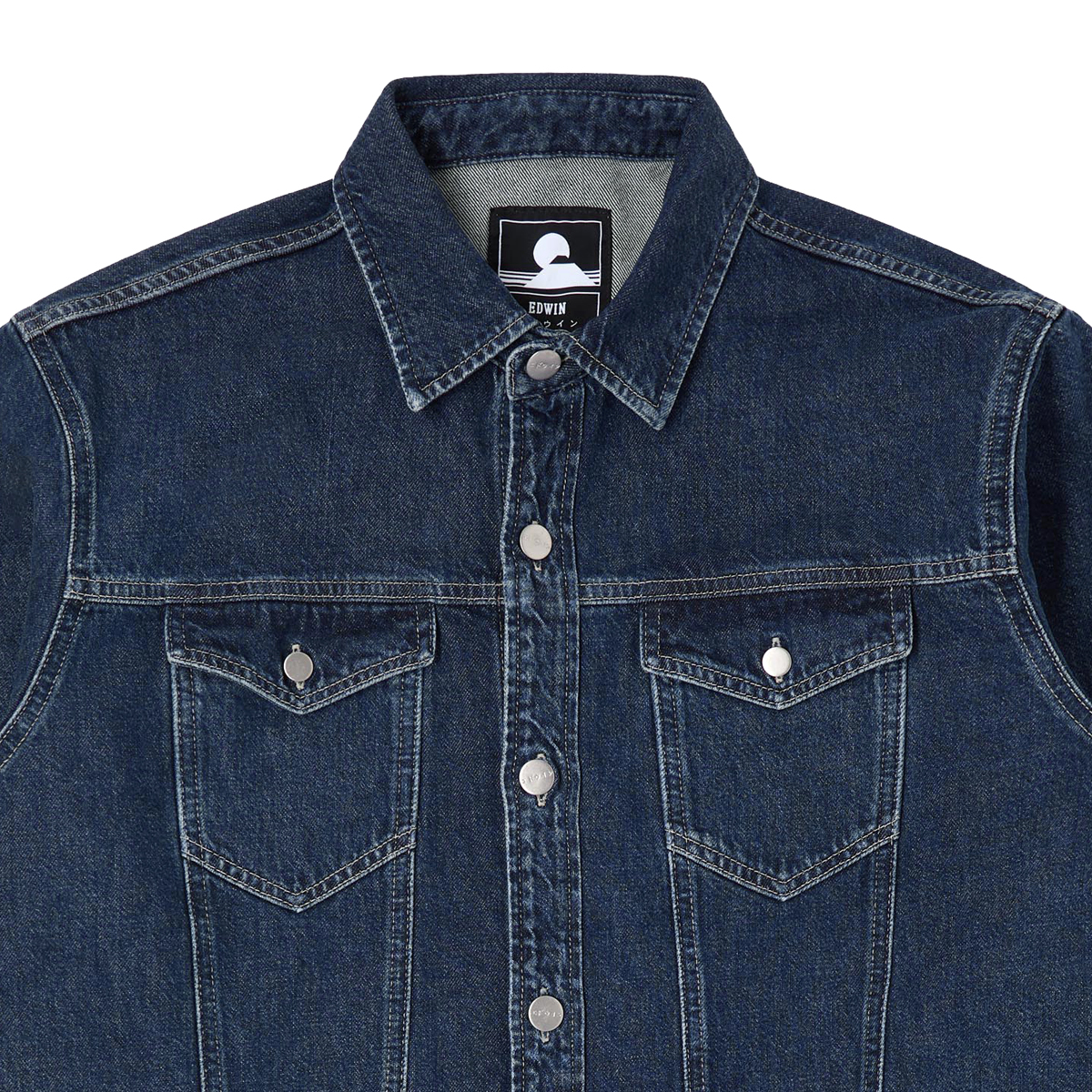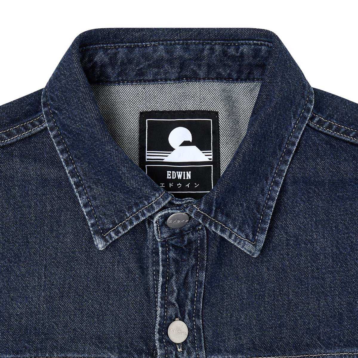 Das EDWIN Trucker Overshirt ist ein relaxed geschnittenes Langarmhemd mit zwei Brusttaschen aus 12.25oz Platinum Blue Denim Cotton.