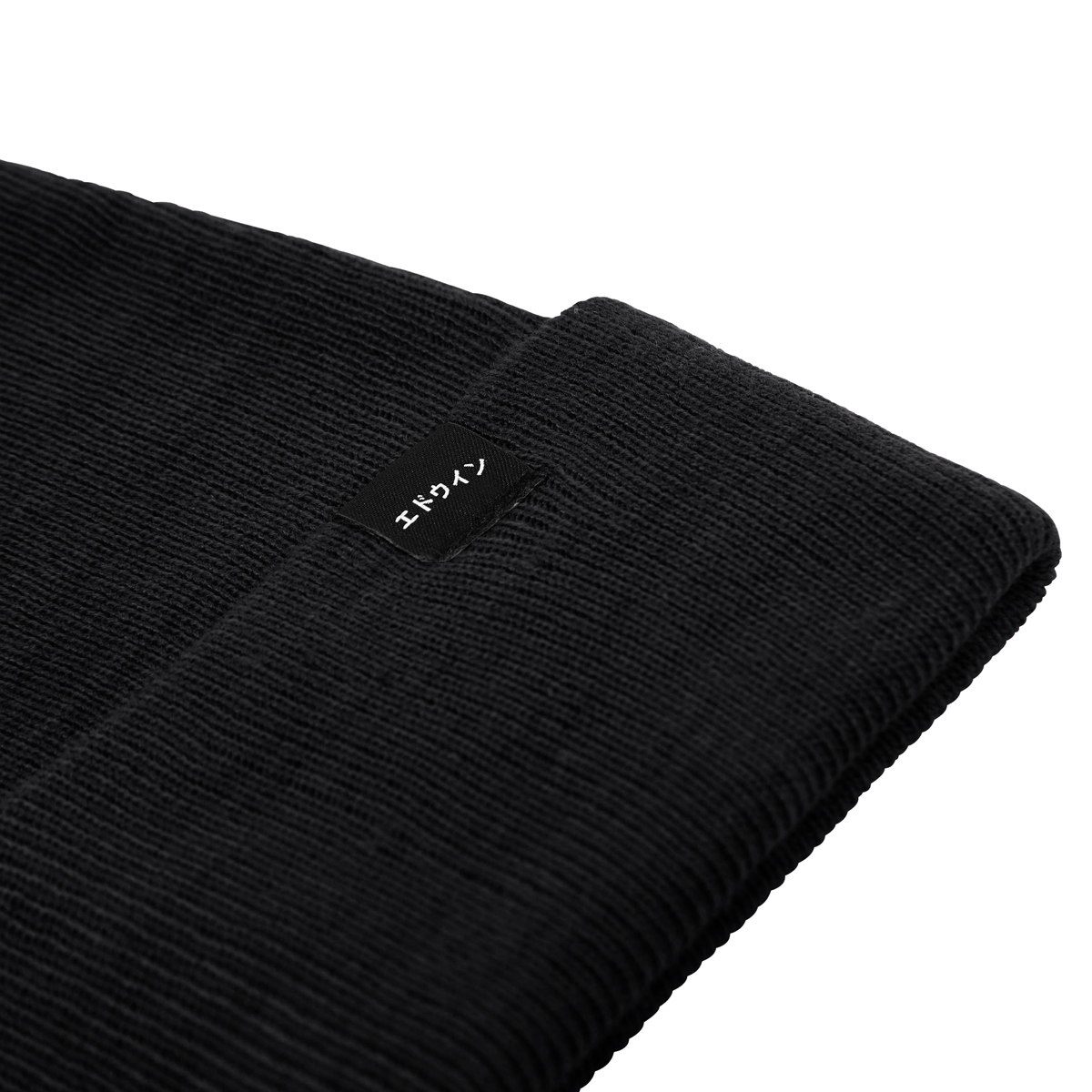 Die EDWIN Watch Beanie besteht aus weichem Acryl-Jersey und hat auf dem Umschlag ein EDWIN Woven Label.