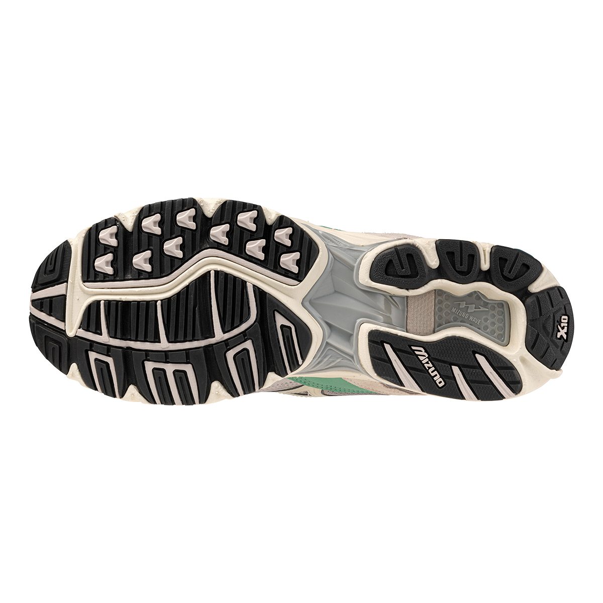 - X10 - Extrem langlebiger Mizuno-Carbongummi, der eine längere Haltbarkeit in stark beanspruchten Bereichen ermöglicht und beim Fersenauftritt für mehr Traktion sorgt