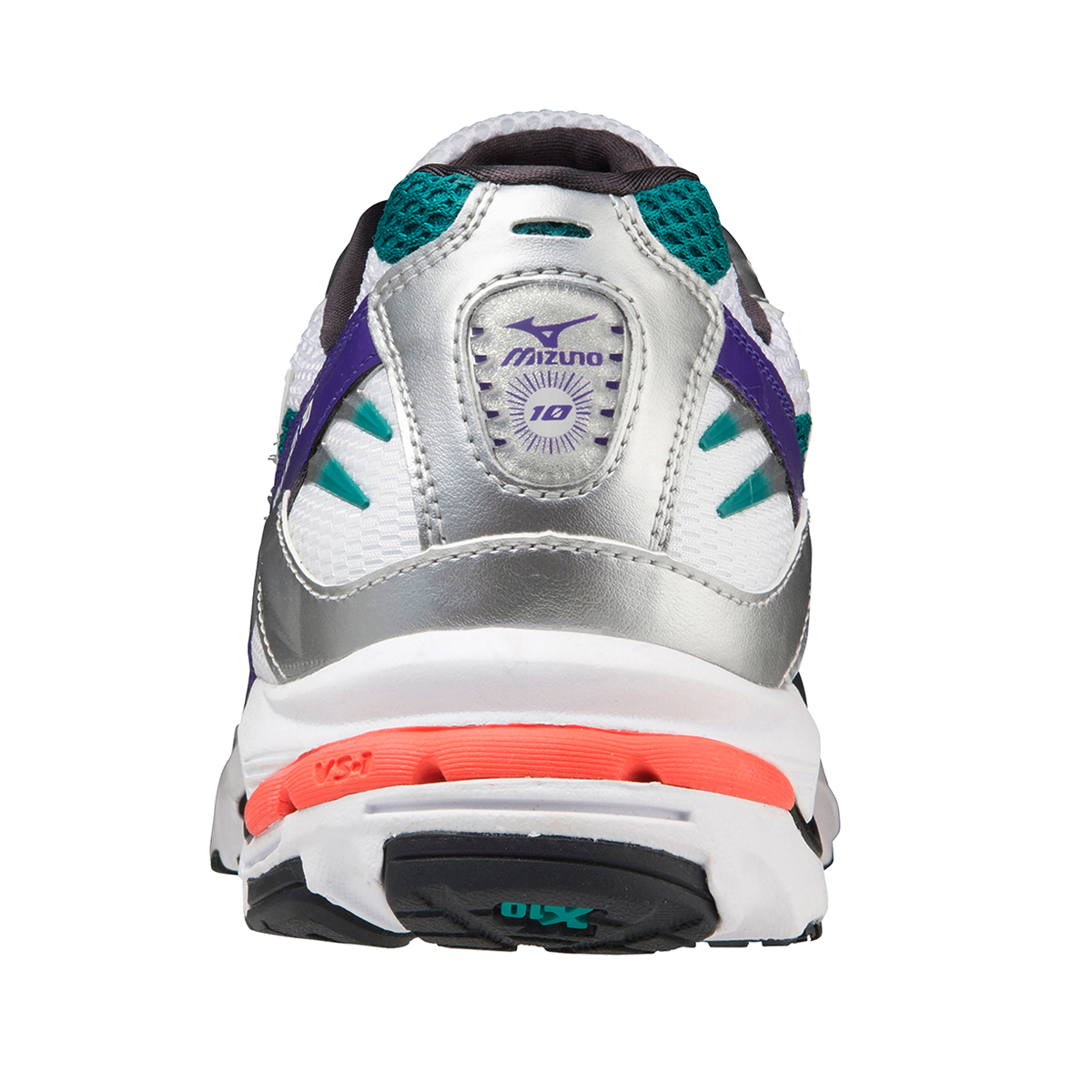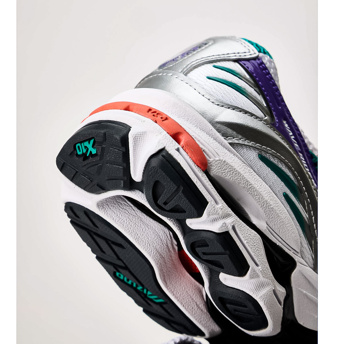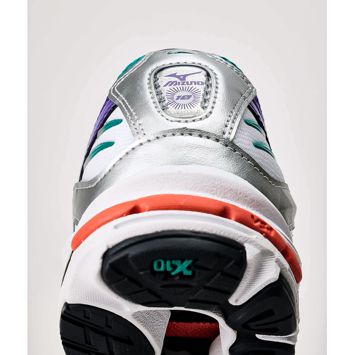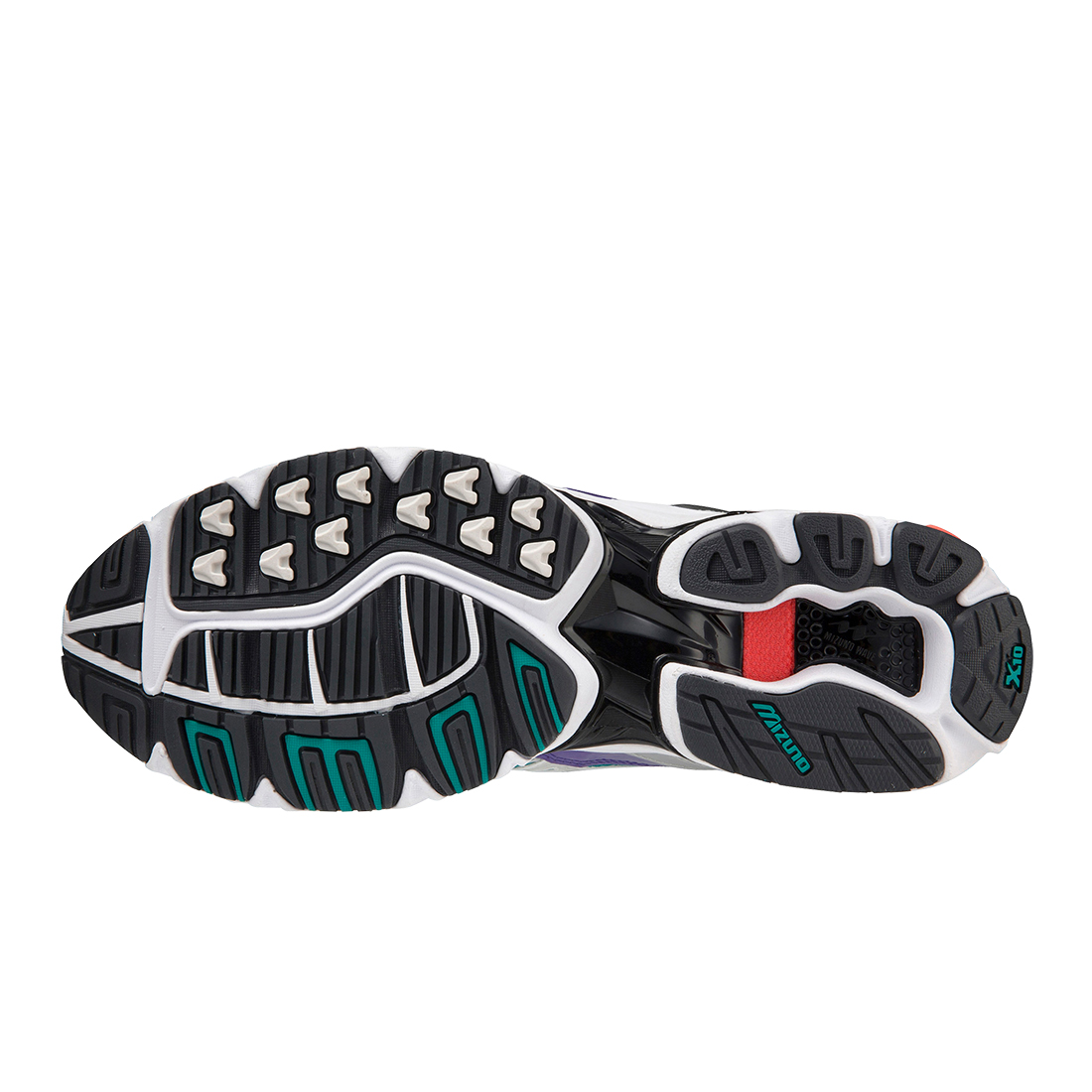- X10 - Extrem langlebiger Mizuno-Carbongummi, der eine längere Haltbarkeit in stark beanspruchten Bereichen ermöglicht und beim Fersenauftritt für mehr Traktion sorgt