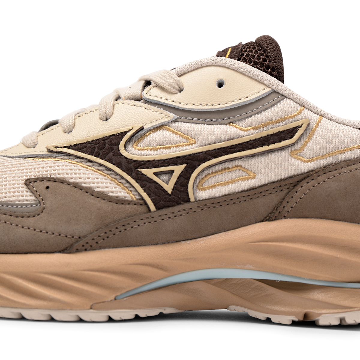 - X10 - Extrem langlebiger Mizuno-Carbongummi, der eine längere Haltbarkeit in stark beanspruchten Bereichen ermöglicht und beim Fersenauftritt für mehr Traktion sorgt