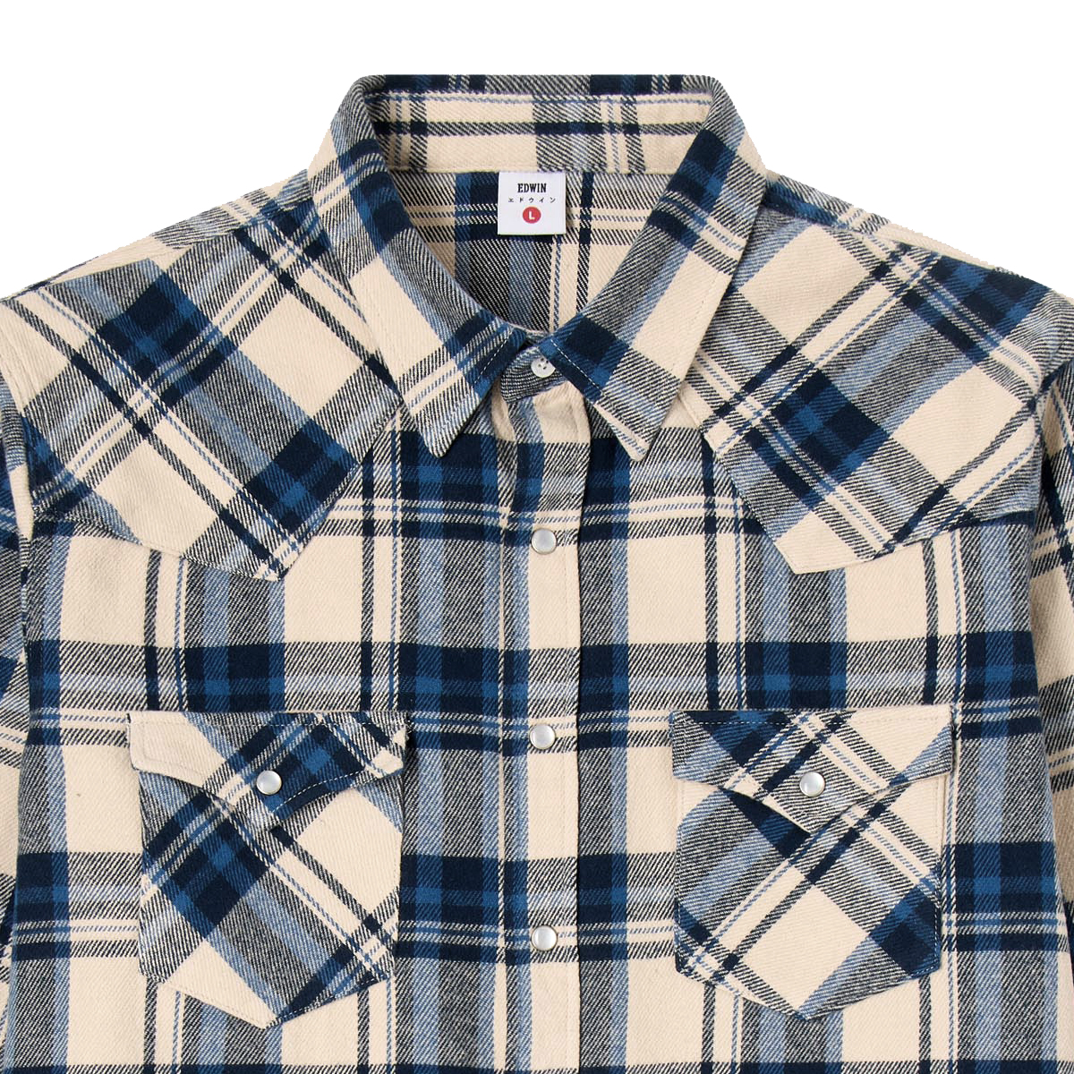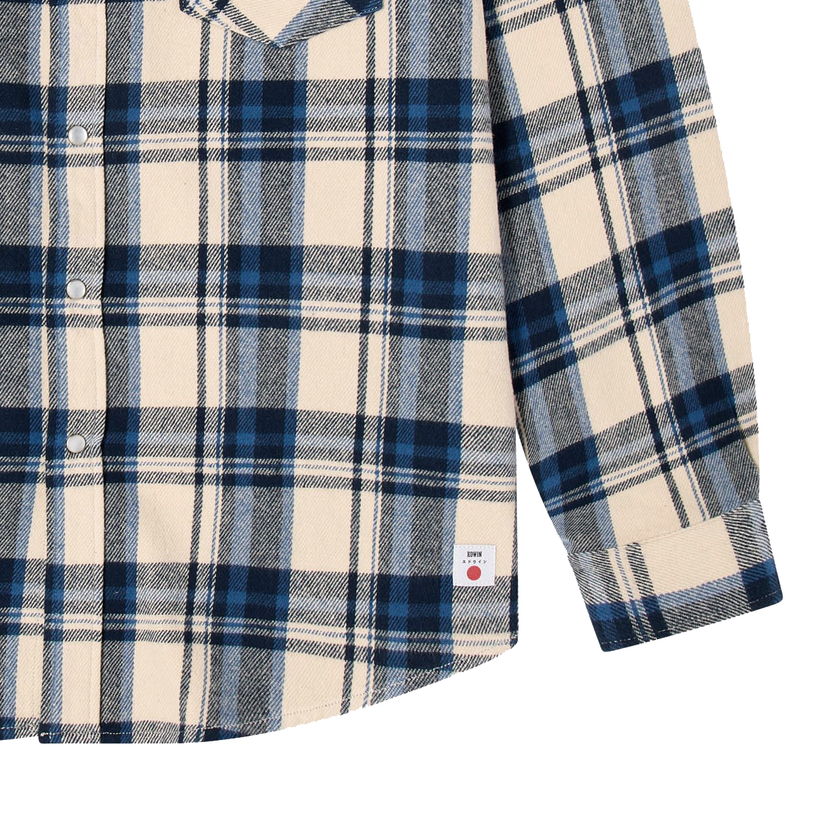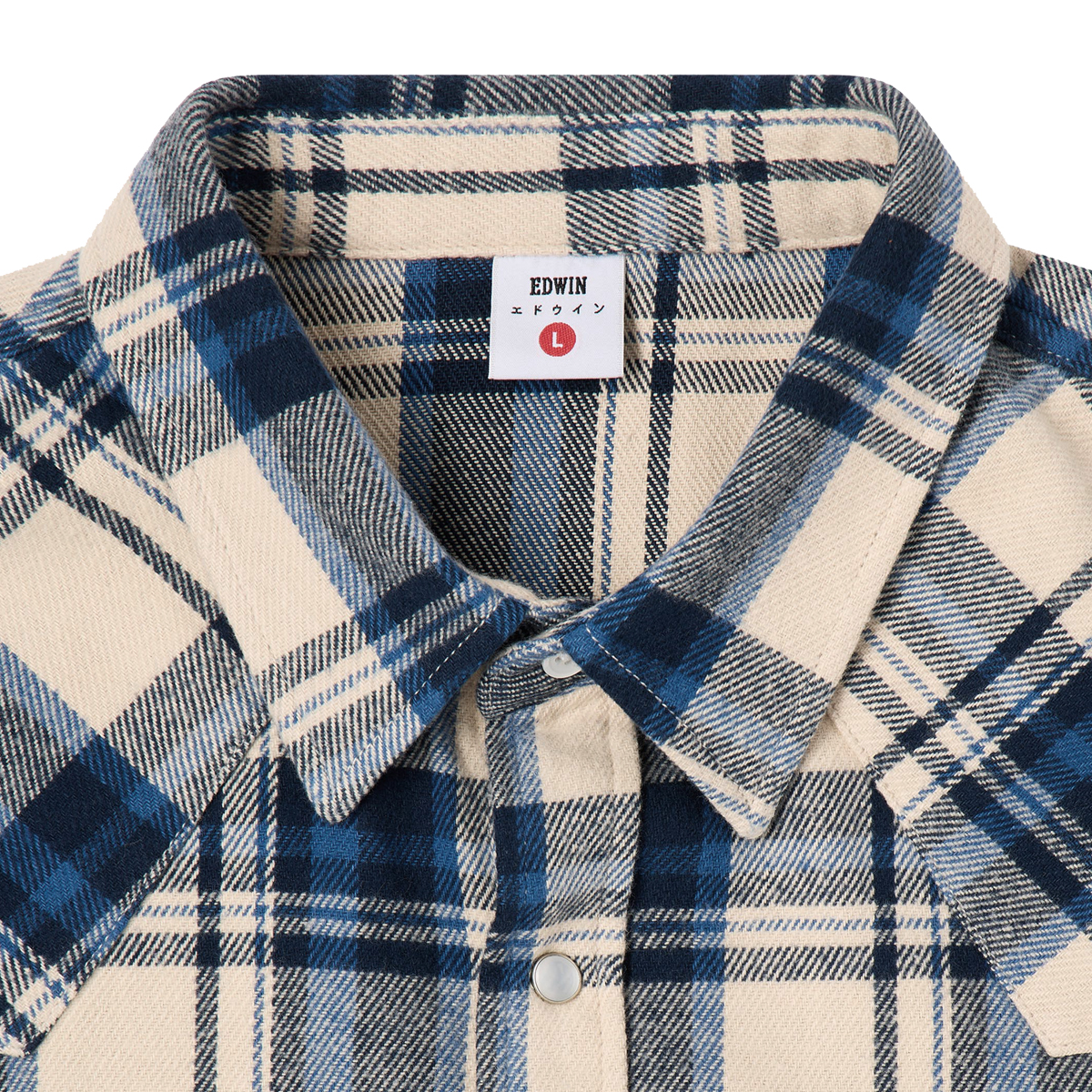 Das EDWIN Western Flanell Shirt ist ein klassisch geschnittenes Langarmhemd aus schwerem 260 g/m² Madras Checks Cotton. Der klassische Western-Look, die Druckknöpfe in Perlmutt-Optik und das kleine "Japanese Sun" Woven Logo sorgen für authentischen Stil und zeigen zeitlose Handwerkskunst.